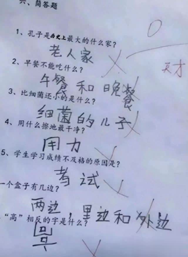 不止是邻居家娃,很多孩子考试答案都是五花八门儿,让人哭笑不得。