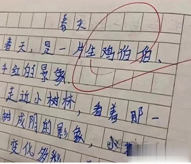 看看下面这篇作文,“生机勃勃”四个字错了仨。