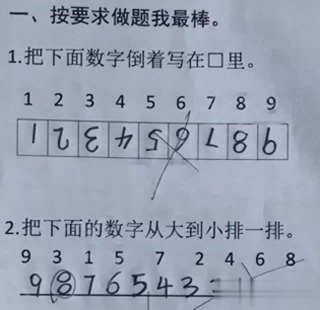 咱看看这道送分的数学题:要求把下面数字倒着写在方框里。