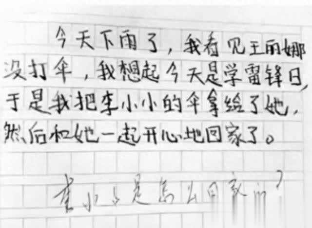 孩子,把别人的伞拿来,让别人淋雨去吧,咱学雷锋可不带这样的哈!