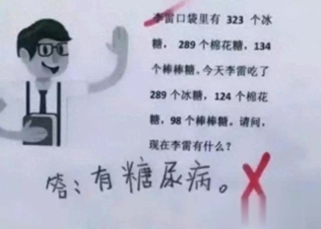 这难道不是一个简单的加减运算吗?可在孩子脑袋里,瞬间想到的却是糖尿病。