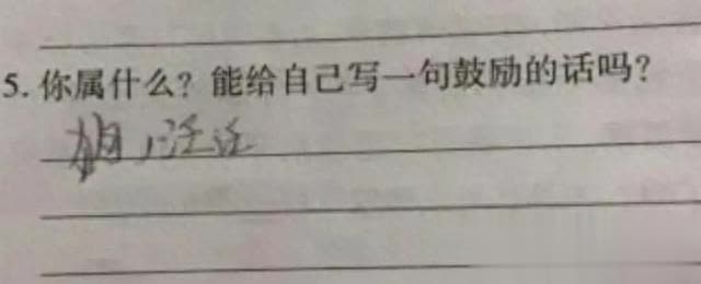 再看看这种开放性的题目:你属什么?能给自己写一句鼓励的话吗?